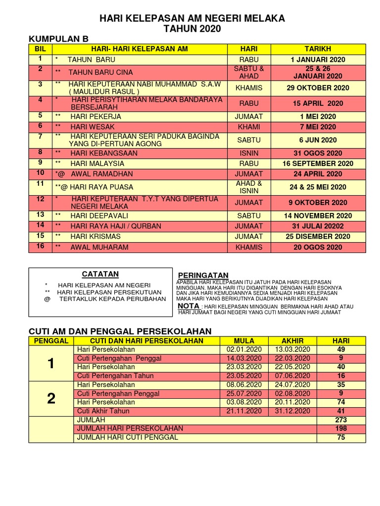Hari kelepasan am tahun 2020. Apabila hari kelepasan itu jatuh pada hari ahad, maka hari kelepasan itu digantikan dengan hari esoknya dan jika hari yang kemudiannya itu juga merupakan hari kelepasan, maka berikutnya dijadikan hari kelepasan. Hari kelepasan am tahun 2020. Knereq cem karoranum nayel film@ ci bacum incic e???? Untuk maklumat lebih terperinci sila layari www.kabinet.gov.my.