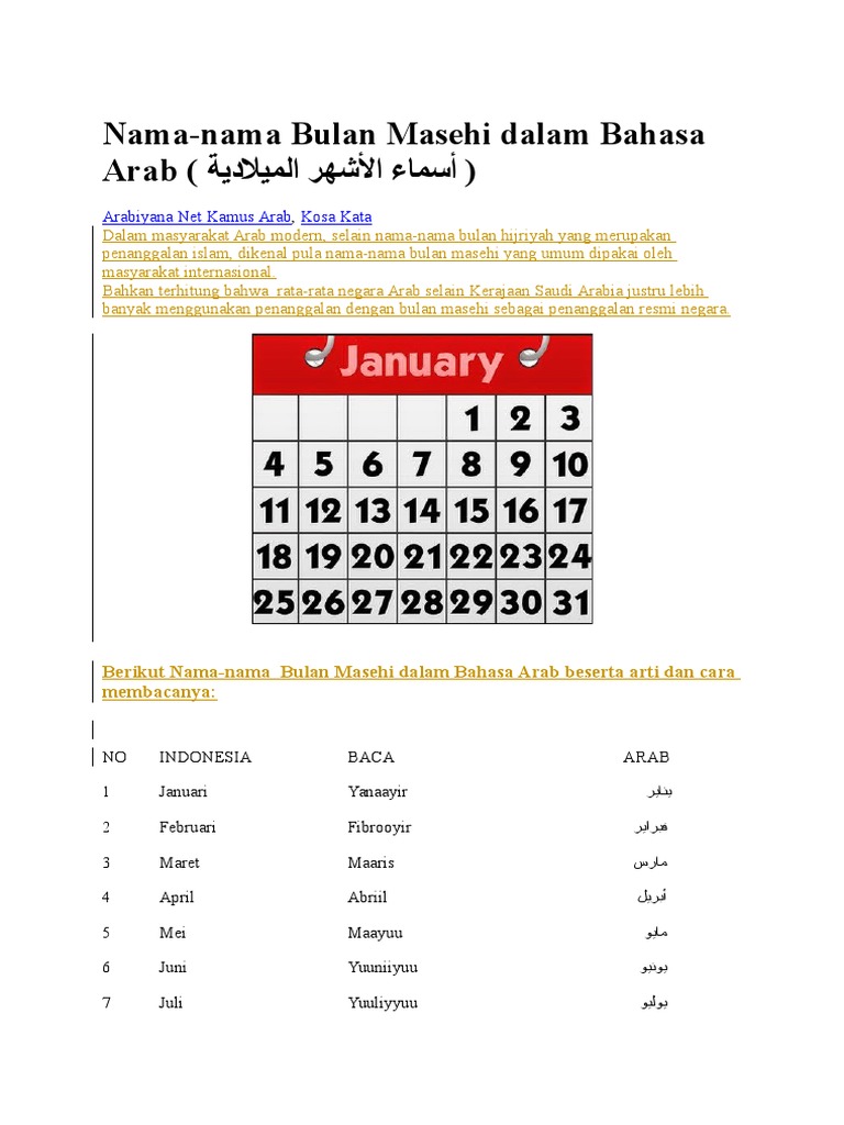 Konsep tradisional ini berawal dengan putaran fase bulan; Bulan dengan jumlah 31 hari adalah januari. saya akan berwisata ke yunani pada bulan januari tahun depan. Untuk pengetahuan semua, macang ataupun bacang merupakan nama sejenis tumbuhan yang bernama saintifik mangifera foetida. Kita lihat nama bulan dalam bahasa inggris dilengkapi arti dan cara pengucapannya.